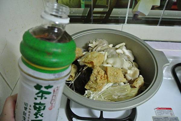但因為菇類會出水,所以我只倒了少許的烏龍茶