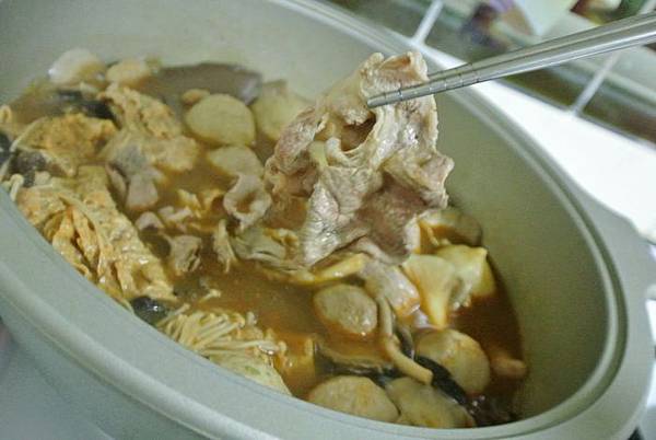 當然是要等到其他食材都煮的差不多了,再把肉片丟到鍋裡