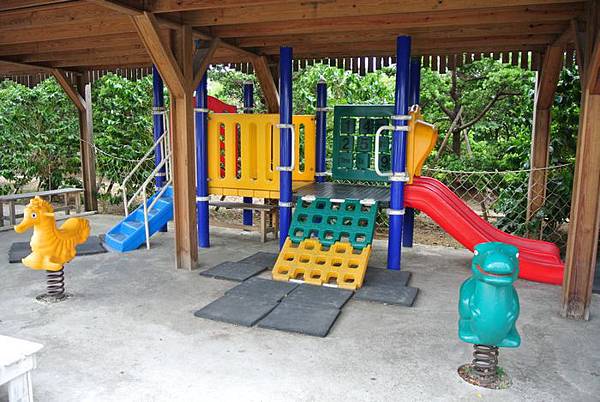 一彎進來,左邊木造房子下方就是兒童遊戲區