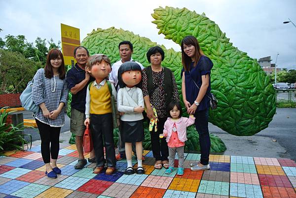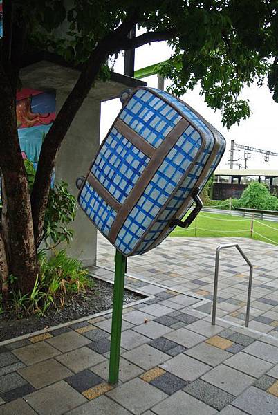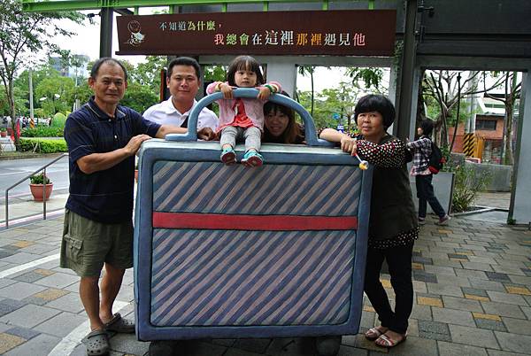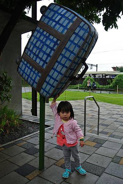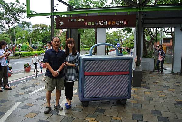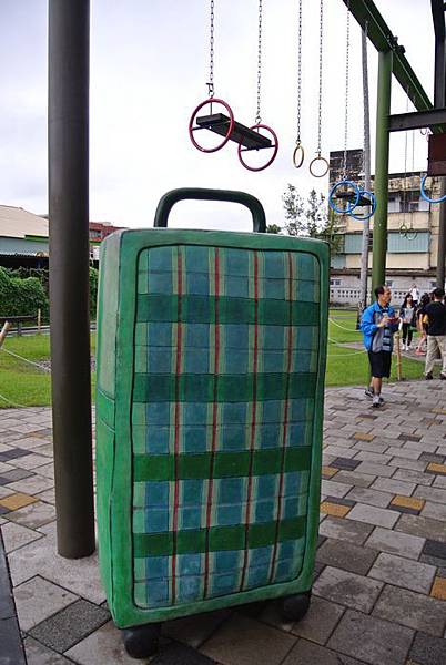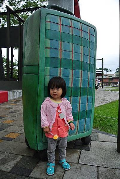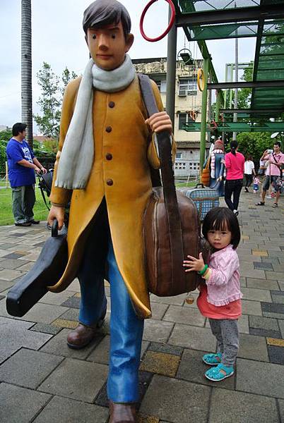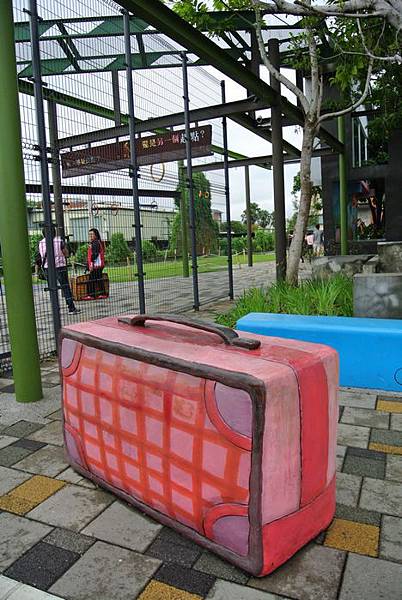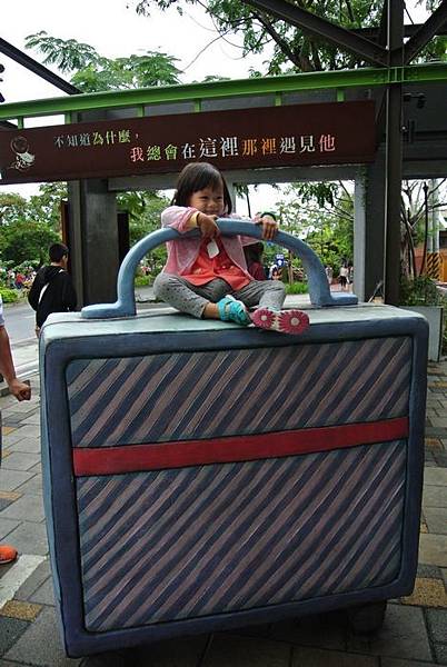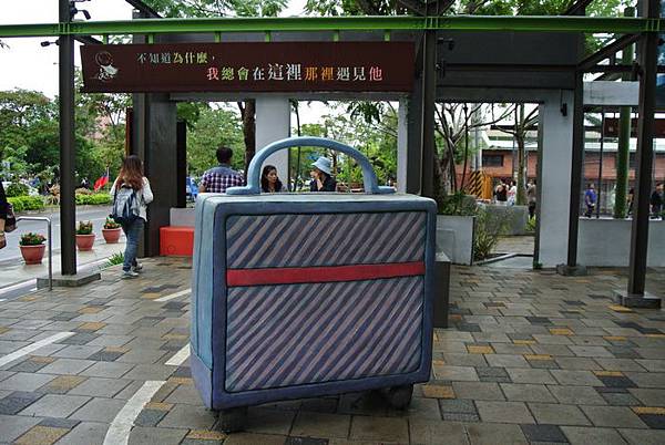 來到幾米廣場,看到很多人偶跟皮箱的造景