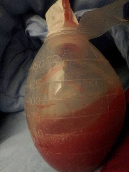 抽血的結果,血紅素有點低,因為本身就不高再加上手術有些微失血再加上這幾天一直有血水流出