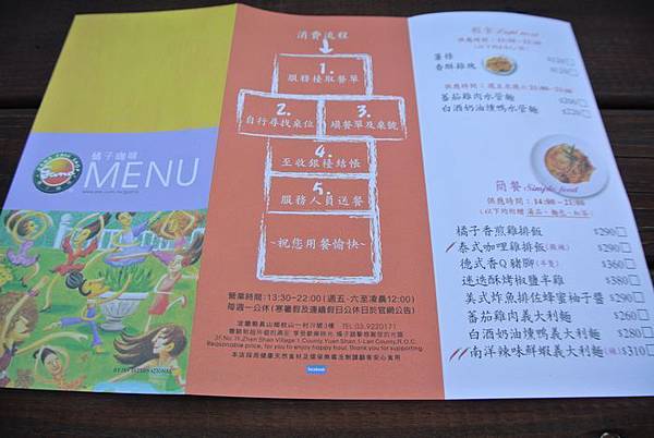 附上橘子咖啡的名片,上面有店家資訊及位置圖