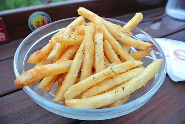 薯條附上蕃茄醬,熱熱的薯條外酥內軟還滿好吃的耶