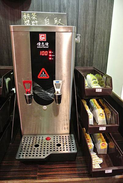 熱茶,提供茶包沖泡,有茉莉綠茶、烏龍茶、紅茶