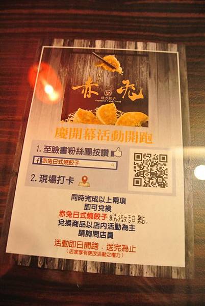 至赤兔日式燒餃子臉書粉絲頁按讚且打卡即可兌換甜點