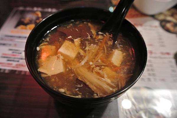 酸辣湯裡有豆腐、豬血、金針菇、紅蘿蔔......