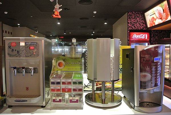 免費暢飲的飲料,有可口可樂、雪碧、還有美利果的柳橙汁跟蘋果汁