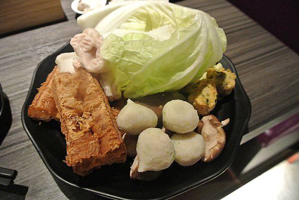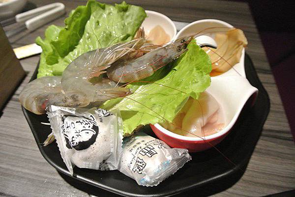 火鍋食材看起來也很新鮮,帶著桌上的盤子自行夾取即可