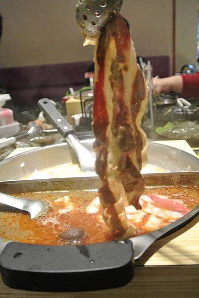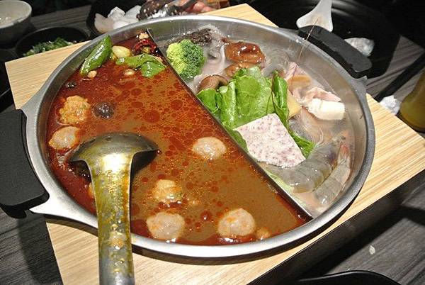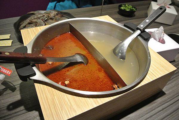 麻辣鍋的湯頭並不辣,後來有跟服務生要了辣汁加到湯裡