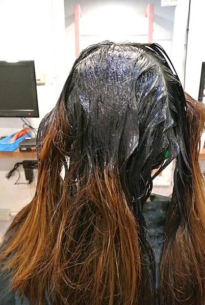 上完頭皮隔離等一下下就開始進行染髮的動作