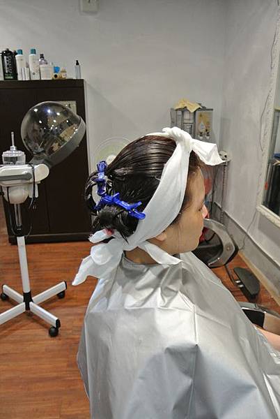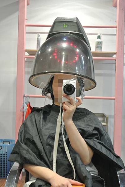 還要用烘罩,利用熱氣讓頭髮更能吸收護髮素的精華