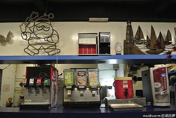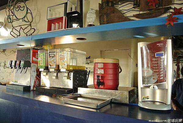 一來到店內看到吧台上有很多自助式的飲料