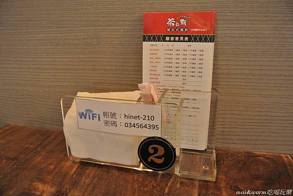 店家提供的wifi,帳號及密碼在每桌子上面的面紙盒都有貼