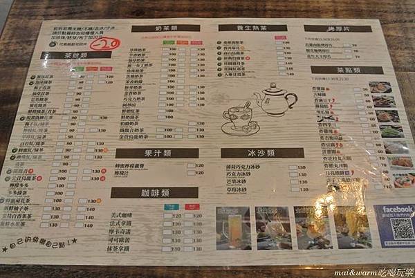 茶自點menu~~這一面是飲料、烤厚片跟茶點類