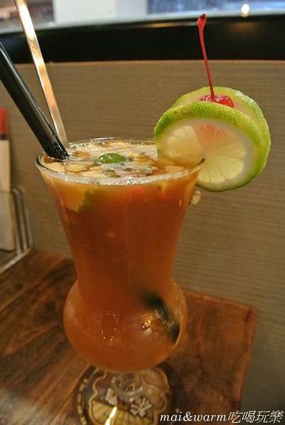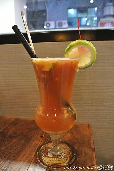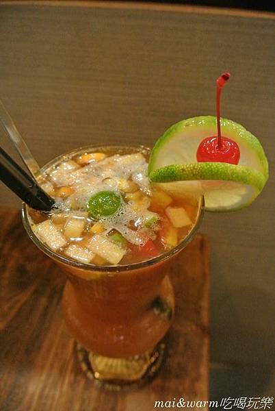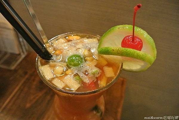 還用了檸檬片做了杯緣裝飾,綠色的檸檬片配上紅通通的櫻桃看起來很美觀