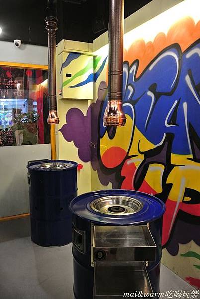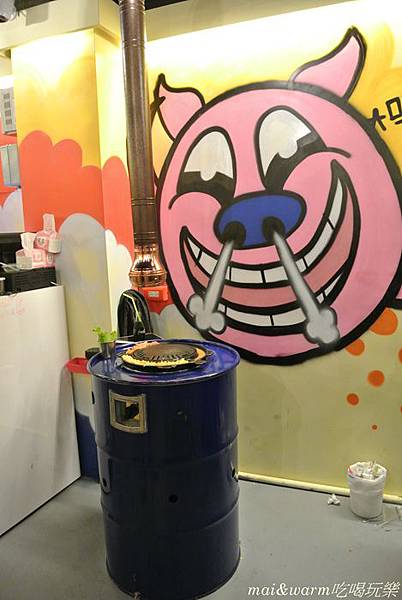 刻意將抽油煙的管子往下拉,讓它可以吸取豬五花烤出來的油煙