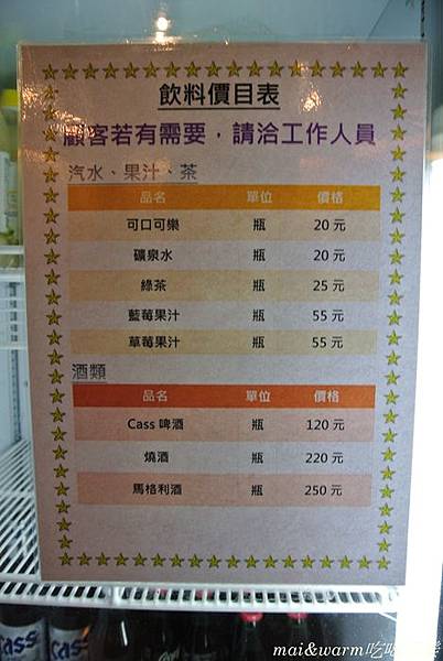 飲料價目表