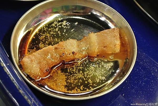 豬五花建議用麻油鹽做沾醬,如果敢吃辣可以試試辣椒醬