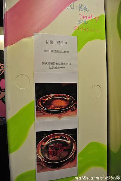 拿取餐具醬料的旁邊還有貼上沾醬小提示