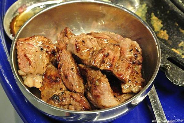 烤好的梅花豬不沾醬吃起來也有淡淡的味道(不知道是不是店家有先醃漬過??)