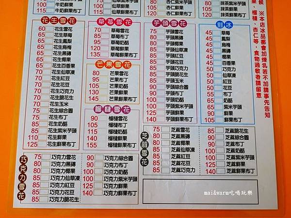 ※老闆有說~~每種雪花冰都會淋上煉乳