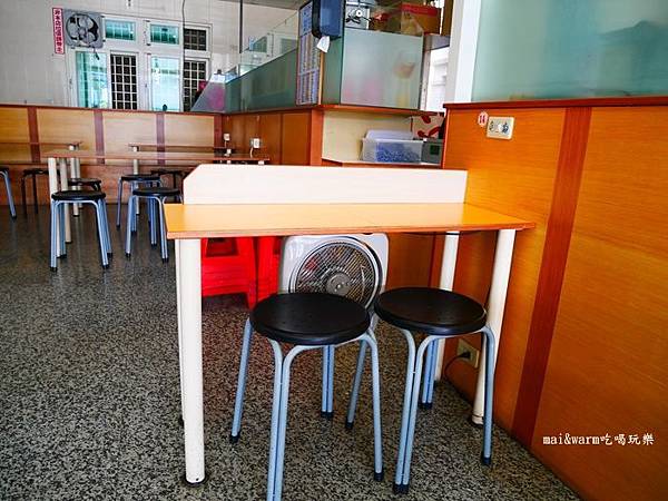 但又怕客人會熱,所以才想到把電扇擺在桌子底下吹~~
