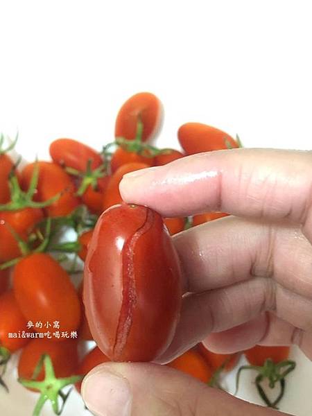 同學說~~因小蕃茄皮很薄,一開始建議連蒂頭一塊清洗比較不會有裂果的現象