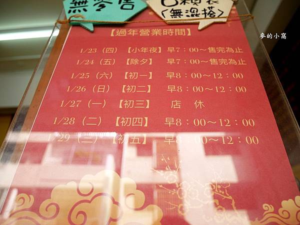 除了大年初三店休外,其他都有營業,只是時間有異動