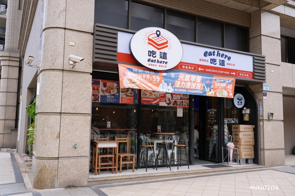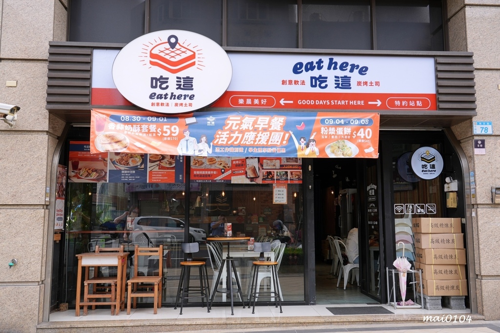 來到Eat here吃這炭火土司提供中西式早午餐,全台獨創厚醬軟法等等都是非常有特色的早午餐