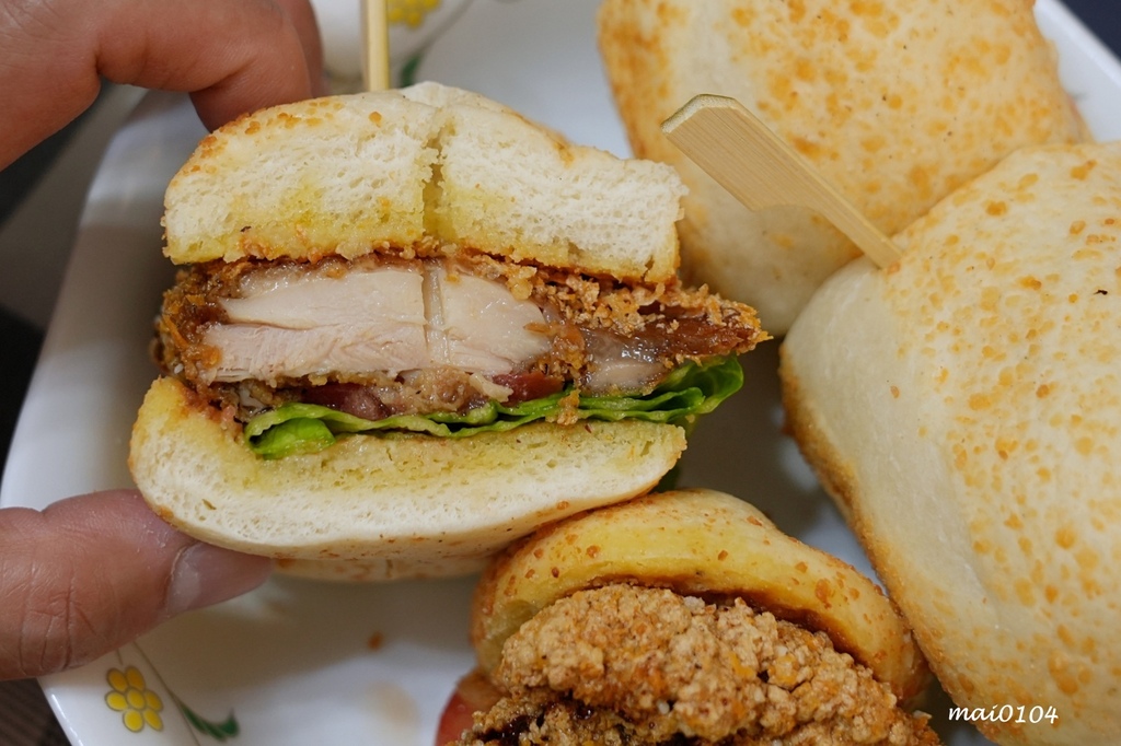 夾層是使用獨家醃料醃製的雞肉,一口咬下讓我想到傳統的炸雞排
