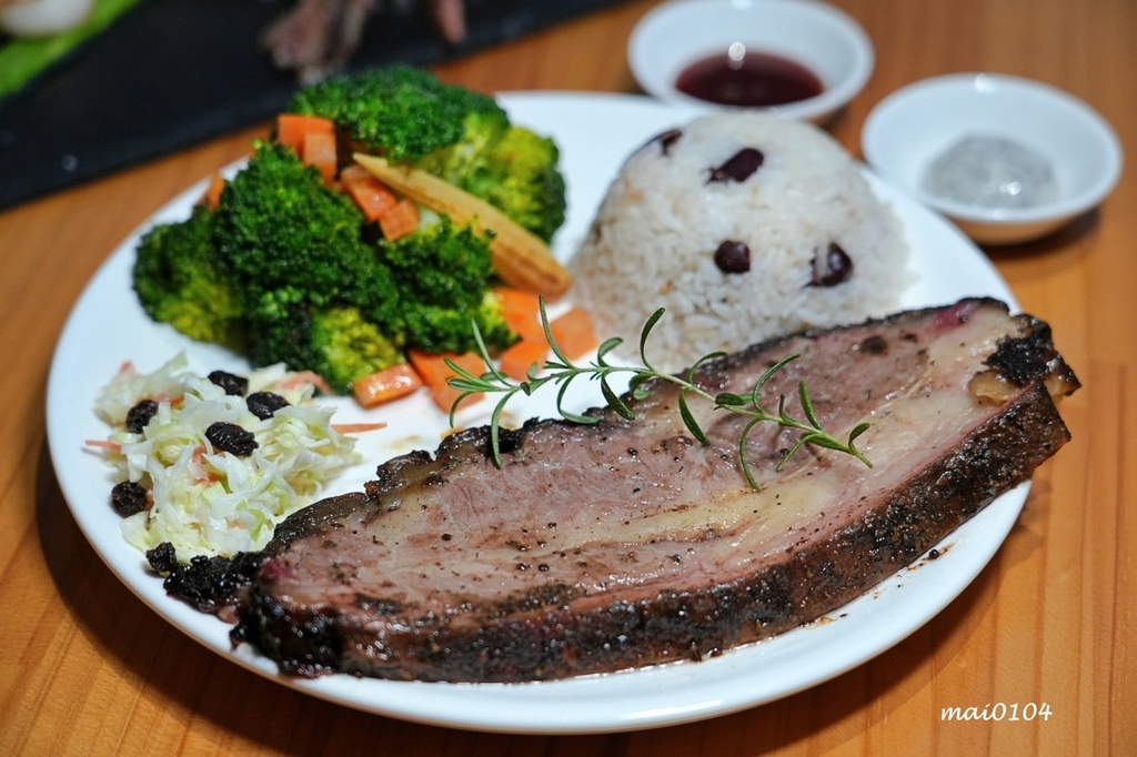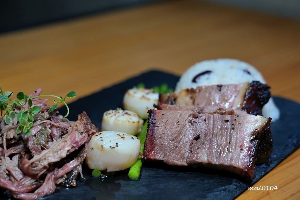 牛胸腹使用台灣龍眼木低溫烤製20小時,肉質充滿著煙燻香氣且有著豐富的油脂,吃起來更散發著滿滿的油脂香氣