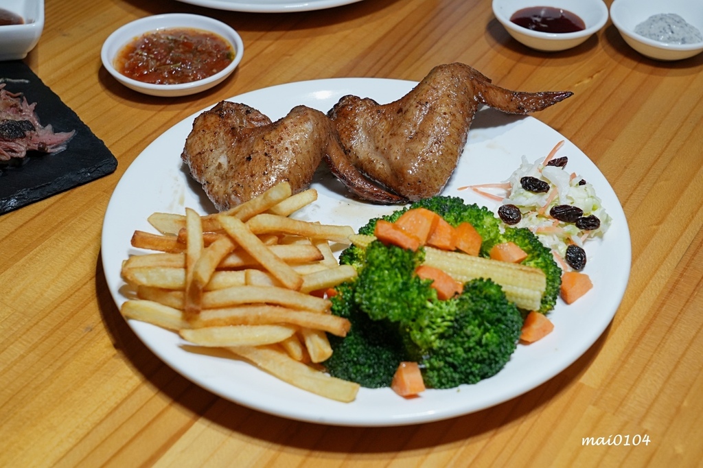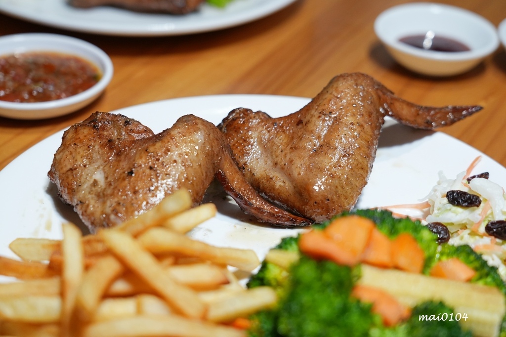 使用台灣在地雞翅,加上主廚獨家配方醃製12~18小時,再用龍眼木低溫烤製2~3小時
