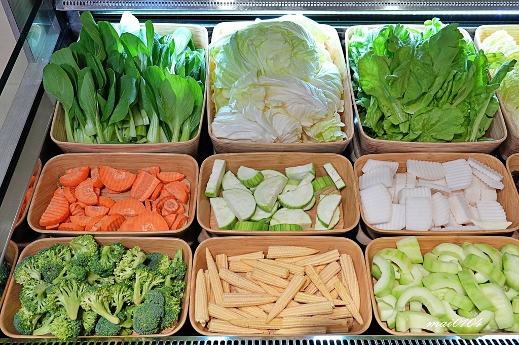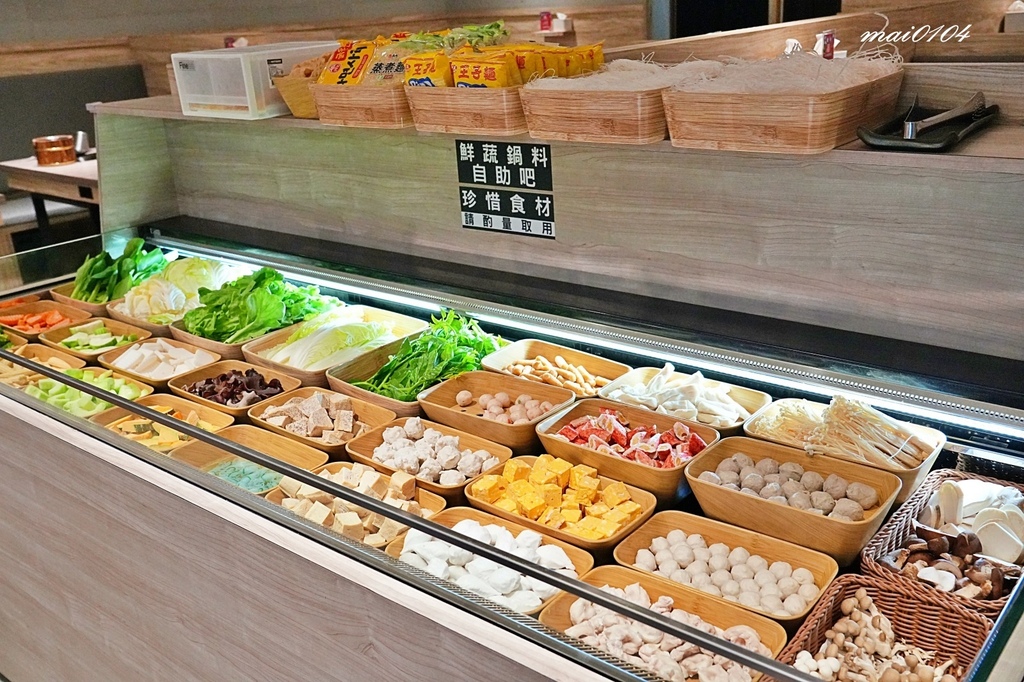 自助吧非常豐富,食材新鮮又乾淨,新鮮蔬菜、火鍋料可說是應有盡有