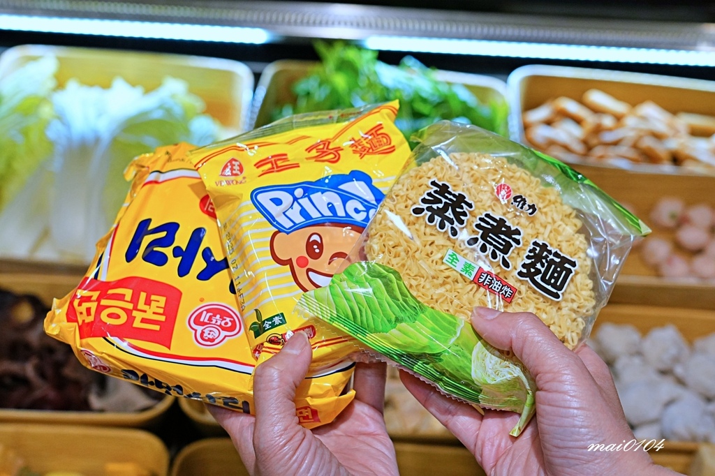 麵食有蒸煮麵、韓國Q麵、王子麵、寬冬粉跟細冬粉