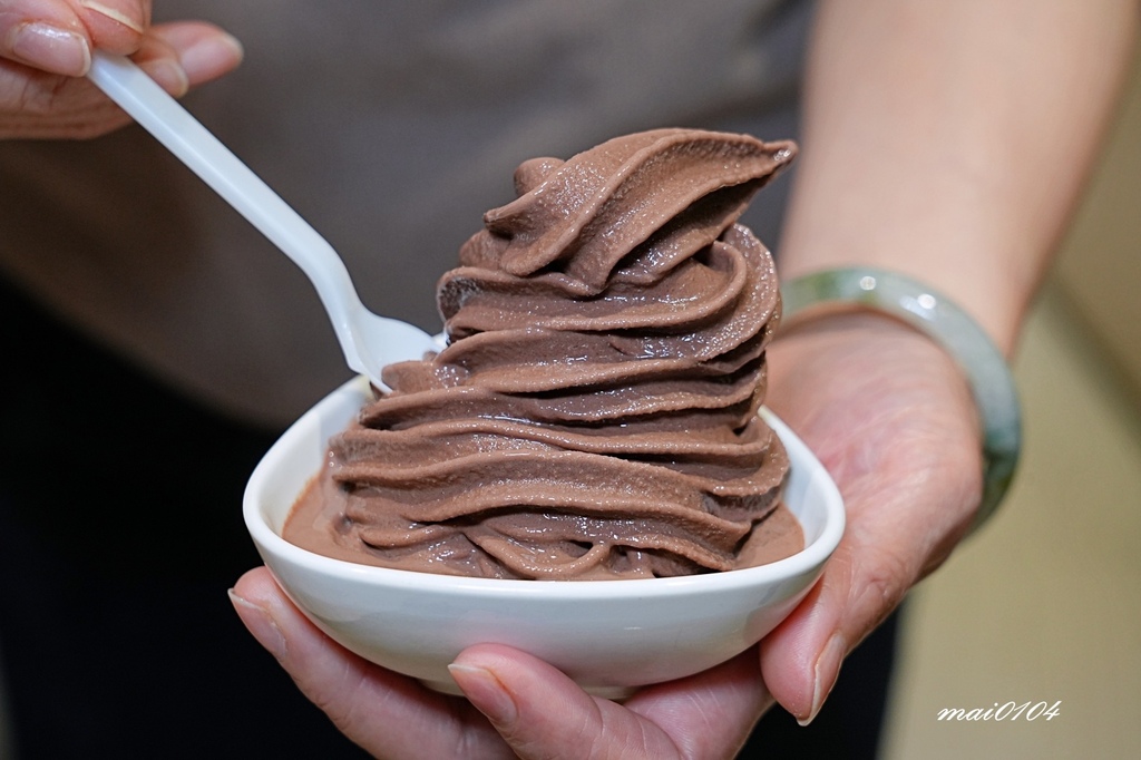 霜淇淋是巧克力口味,低脂吃起來甜度不會太高,女生想吃也不怕有負擔