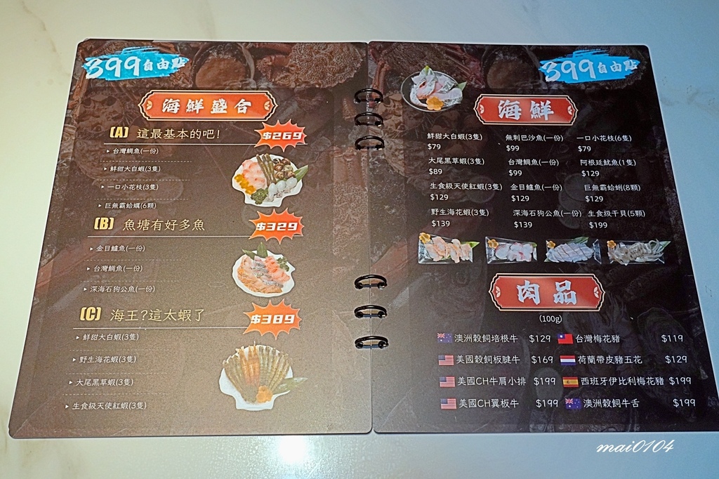 全新用餐方式,每人399元肉品、海鮮自由搭配,還有自助吧無限供應