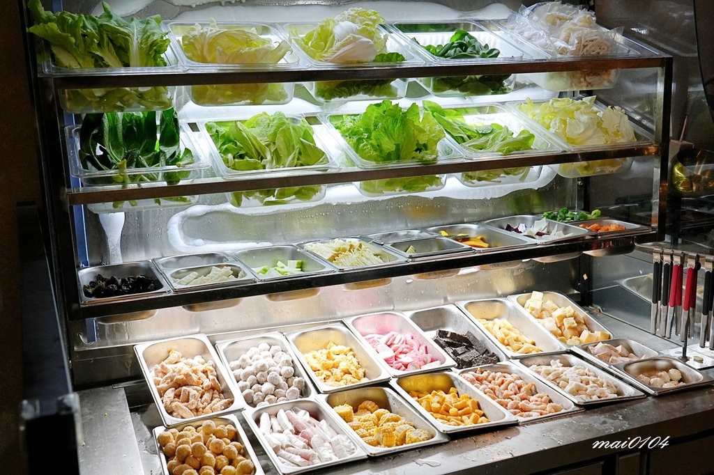 自助吧有著近三十種左右的時蔬及火鍋料,還有白飯、肉燥、麵食、冷熱飲及冰淇淋吃到飽