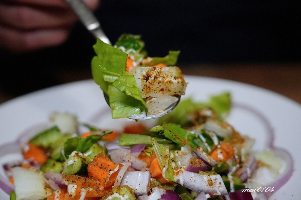 滿滿的蔬菜,有小黃瓜、紅蘿蔔、洋蔥、生菜,對於喜歡吃蔬菜的人來說大推