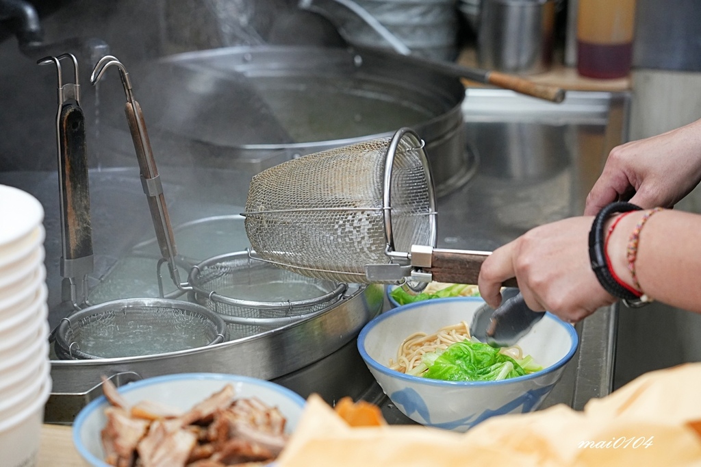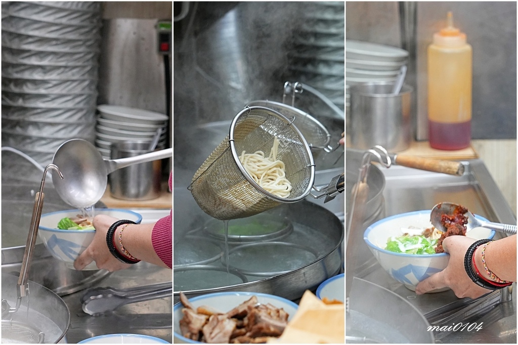 剛好看到店員熟練的燙著麵條、配上醬汁,再加入叉燒豬肉、青菜,而且還會先簡單攪拌一下,就比較不擔心待會麵條會黏在一起