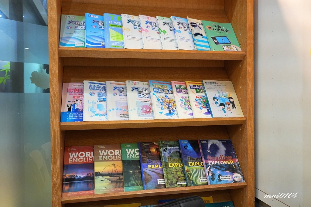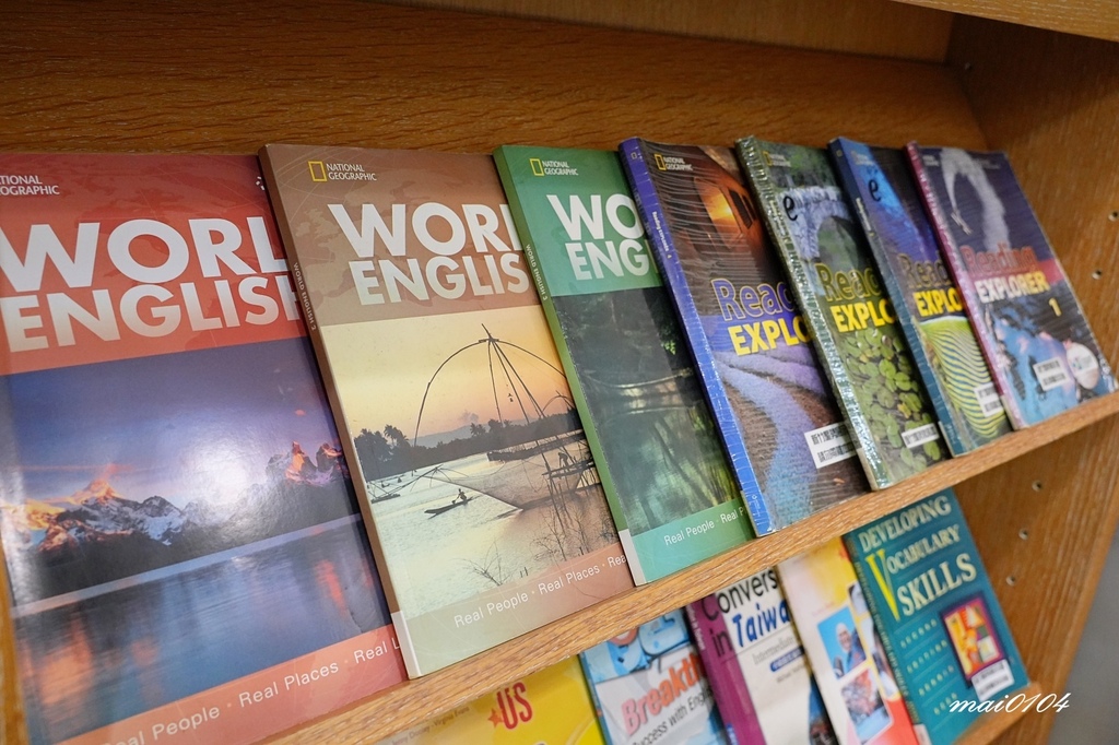 層架上擺放上課的教材及提供超多書籍可以免費閱讀