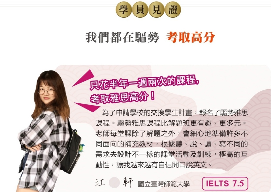 想要 IELTS雅思考取高分,強力推薦驅勢英日韓新竹站前校