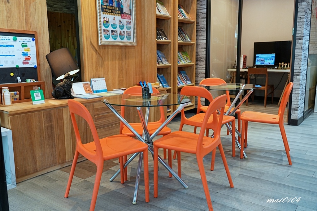 接待區乾淨舒適,亮橘色的椅子非常鮮艷