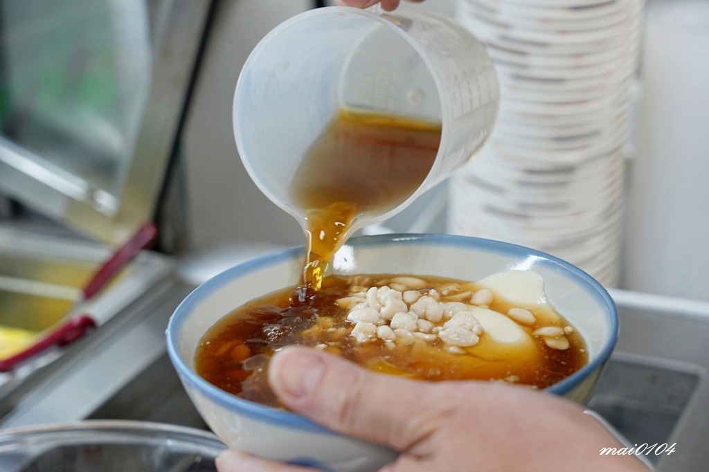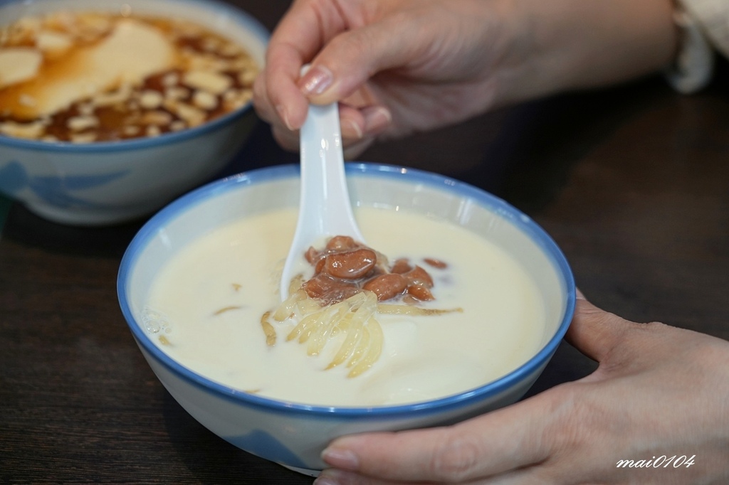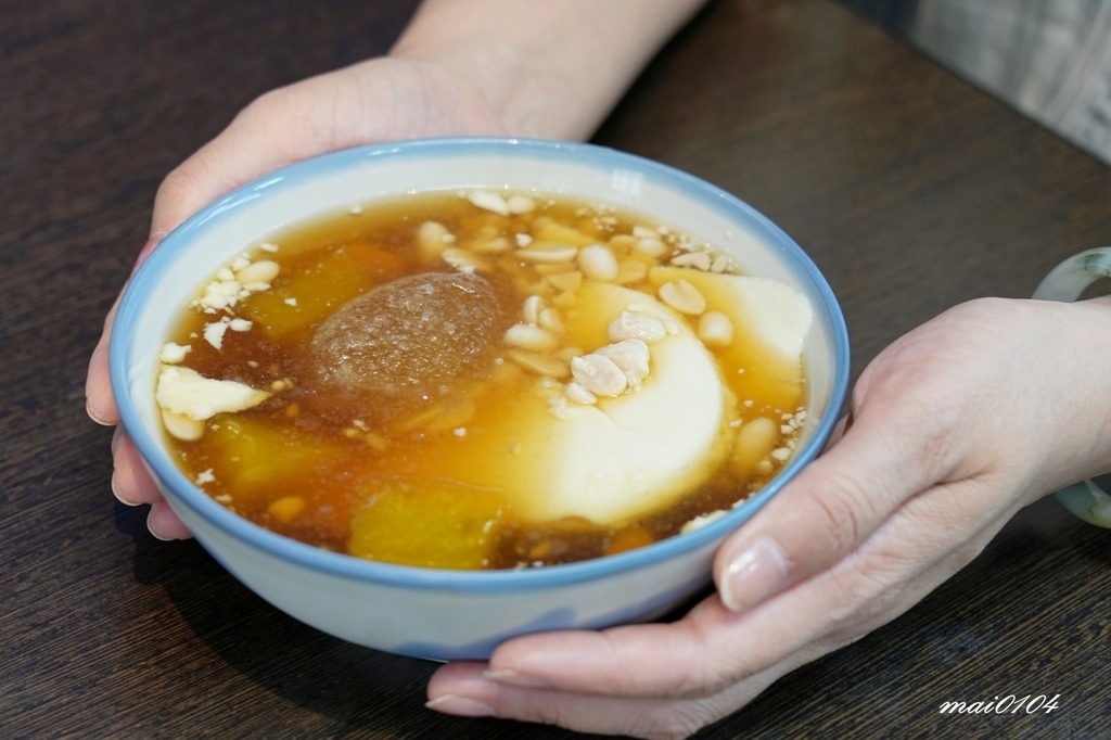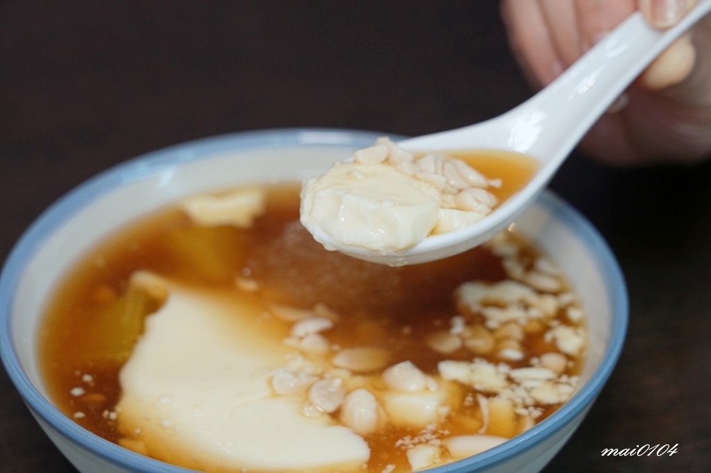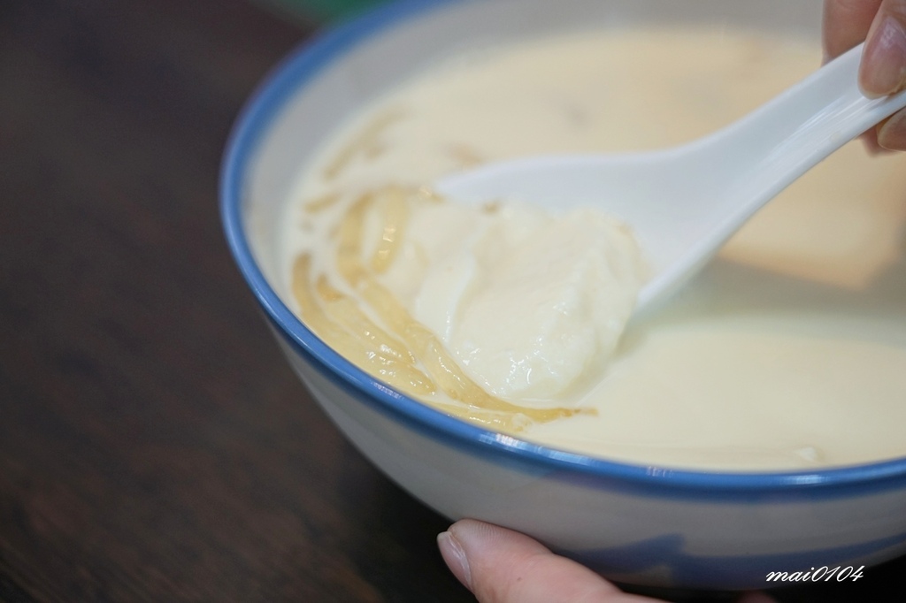 豆花是手工鹽滷豆花,看起來有彈性但吃進嘴裡很綿密,一抿在嘴裡豆香味立刻散發在口中