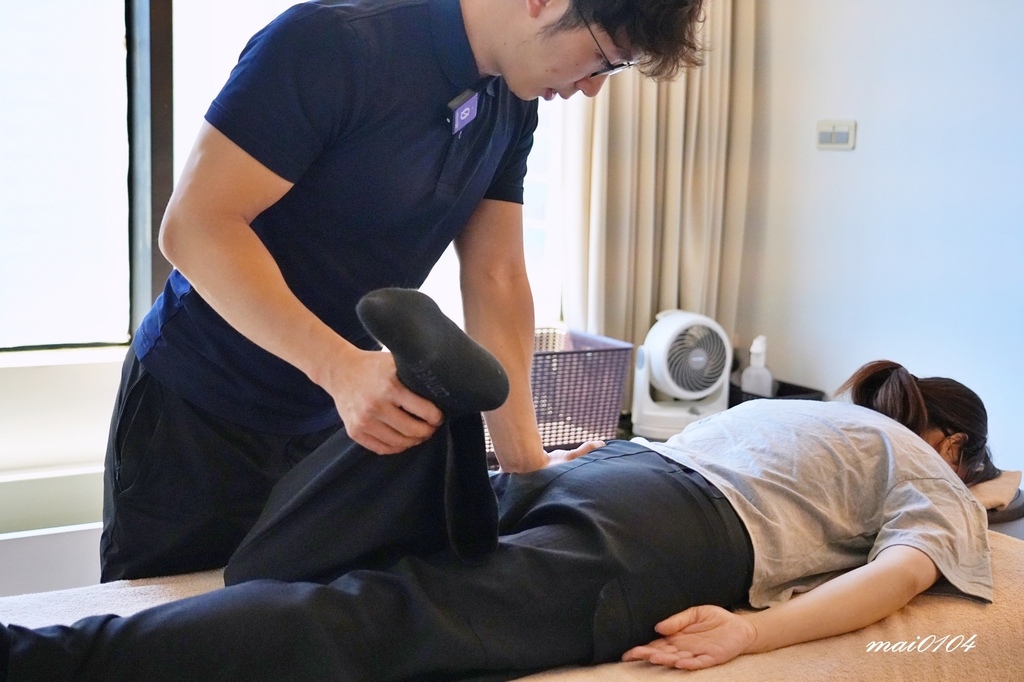 阿諾老師會循順漸進,一隻腳按壓推拿完再換另一隻腳,且按壓的過程也會邊看看是否還有長短腳的問題